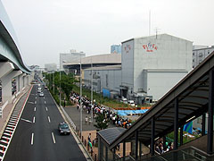 現地まで行って驚きましたが、なんと最後尾は会場から一番近い有明テニスの森から更に2駅先の新豊洲辺りとの事。そしてゆりかもめで移動して新豊洲から降りてみると、その最後尾は晴海大橋を渡りきる寸前の所まで伸びていた。しかも並びの列が進むスピードよりも、献花に訪れる人の方が圧倒的に多いのだ。